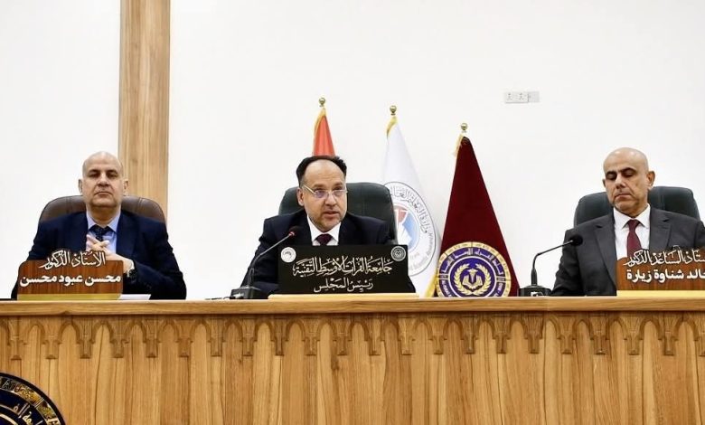 وأضاف أن الجامعة ماضية في تطوير بنيتها المؤسسية والعلمية بما يعزز من توجهاتها التقنية، مستندة إلى رؤية واضحة تسعى لتحقيق التميز الأكاديمي، مثمناً في الوقت ذاته جهود الملاكات التدريسية والإدارية في ترسيخ مفاهيم الجودة وبناء الأنظمة المؤسسية وفق أفضل الممارسات.